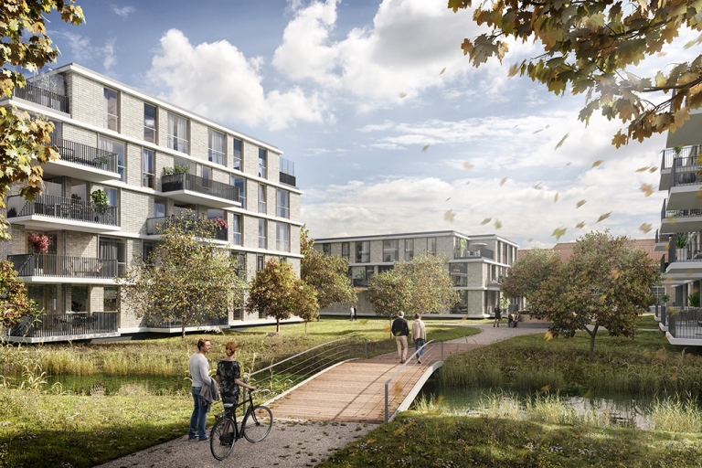 Zo ontstaat er een duurzaam, modern ensemble van gebouwen met een lichte en optimistische uitstraling achter het monumentale rode bakstenen Missiehuis.